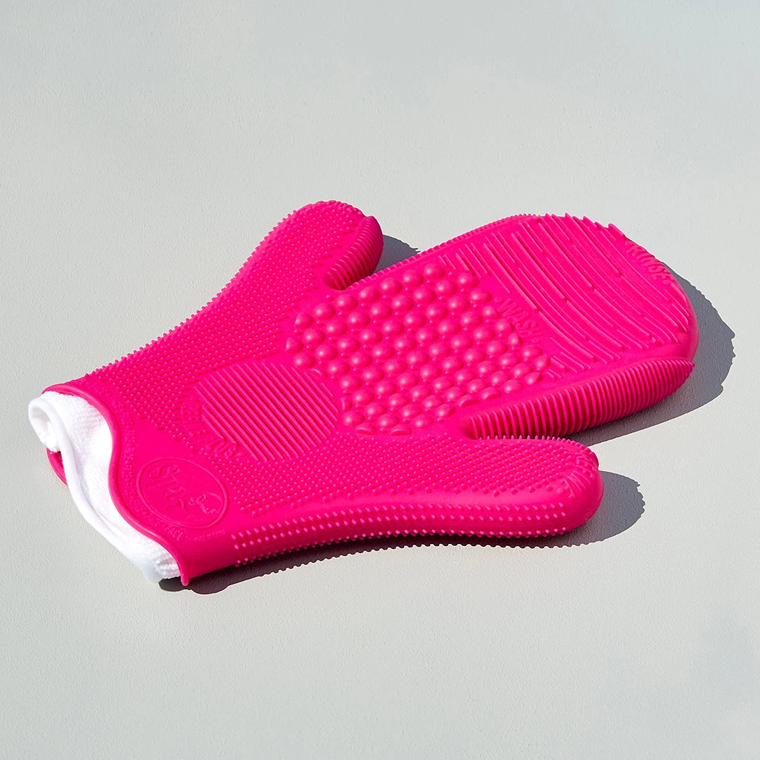 Brush cleaning just got easier with this 2-thumb glove! Use the 8 exclusive textures to remove product build-up, oil and dirt from your makeup brushes for better skin and makeup application.