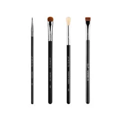 These are my favorite eye brushes: a perfect detail brush, color applicator brush, blending brush and edge perfectionist brush. With these you can accomplish everything. – Mary and Palettes