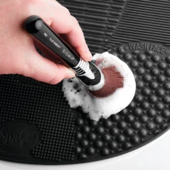 Swirl away product build-up, oil and dirt with this compact silicone mat, featuring 7 exclusive textures to clean brushes of every size!